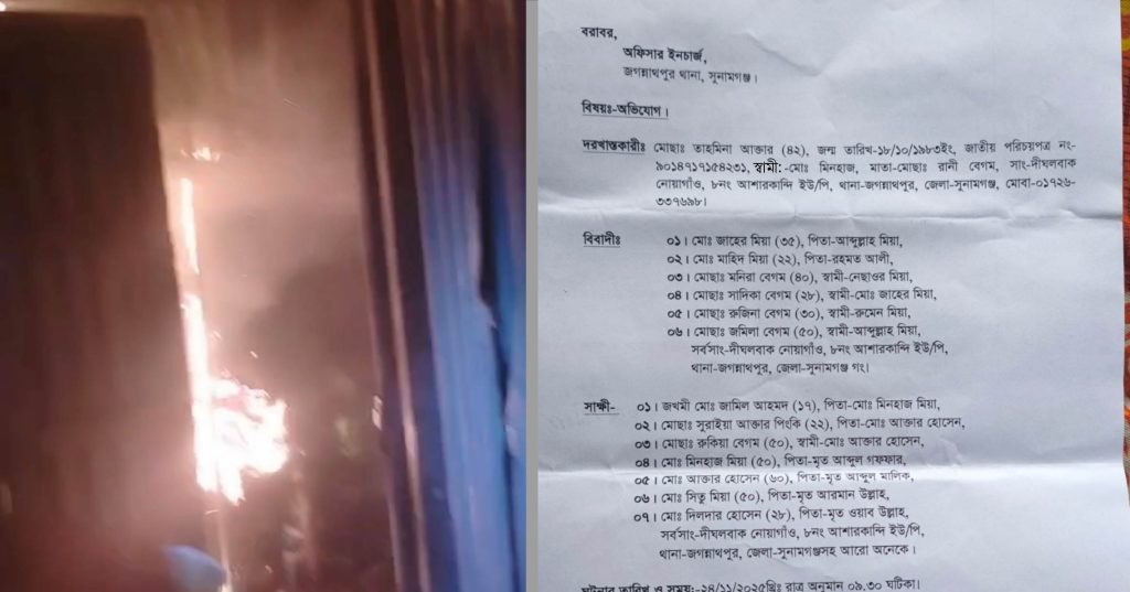 জগন্নাথপুরে পূর্ব বিরোধকে কেন্দ্র করে রান্নাঘরে অগ্নিসংযোগ ও মারধরের অভিযোগ