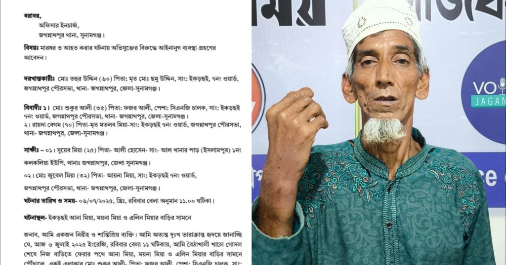 জগন্নাথপুরে নিরীহ বৃদ্ধকে হামলা করে আহত, থানায় অভিযোগ